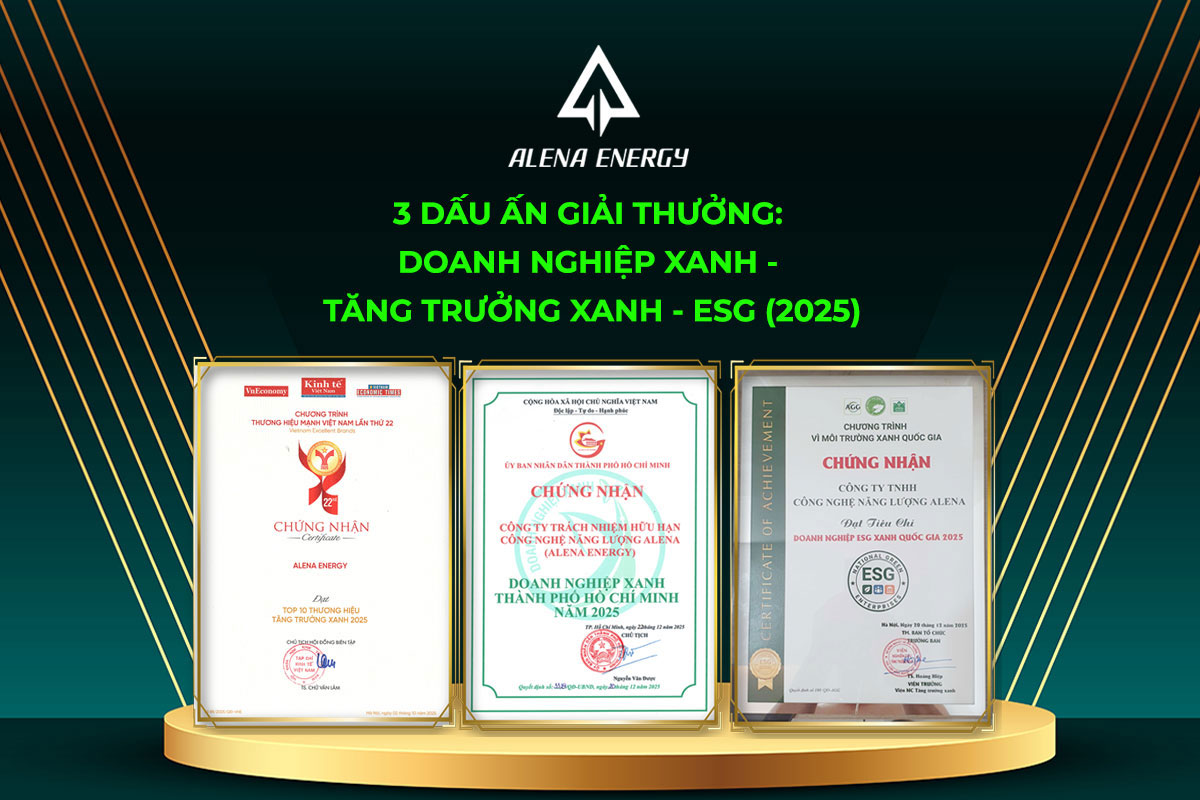 Ba giải thưởng tiêu biểu năm 2025, ghi nhận nỗ lực phát triển xanh, tăng trưởng bền vững và thực hành ESG của Alena Energy.