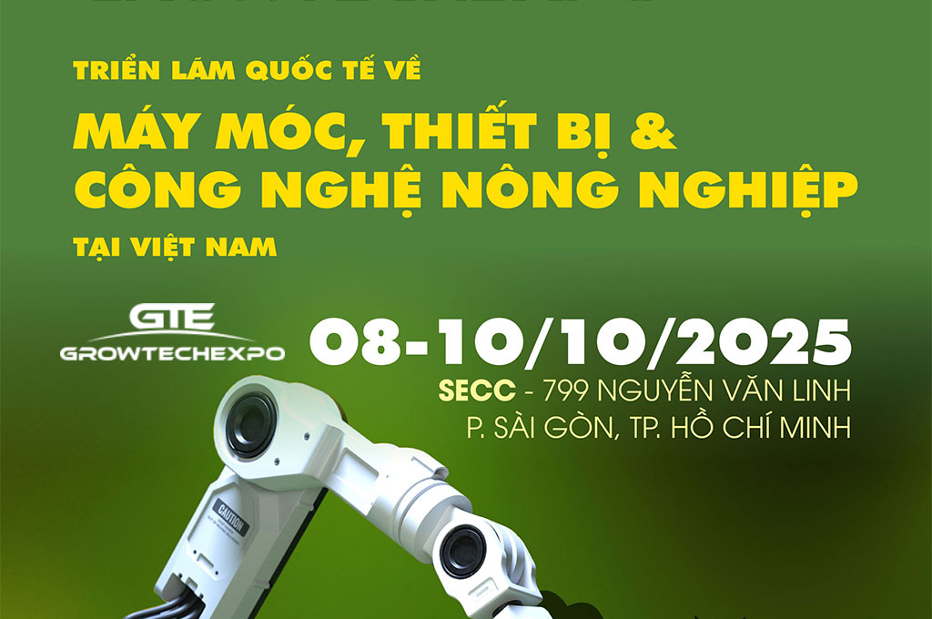 Growtech Vietnam 2025 – Triển lãm Quốc tế chuyên ngành Nông – Lâm – Ngư nghiệp sẽ trở lại đầy ấn tượng từ ngày 08 – 10/10/2025 tại Trung tâm Hội chợ & Triển lãm Sài Gòn (SECC), TP. Hồ Chí Minh. Sự kiện năm nay được kỳ vọng trở thành “điểm hẹn” cho ngành nông nghiệp công nghệ cao, mang đến những trải nghiệm về xu hướng nông nghiệp hiện đại, bền vững và thân thiện môi trường.