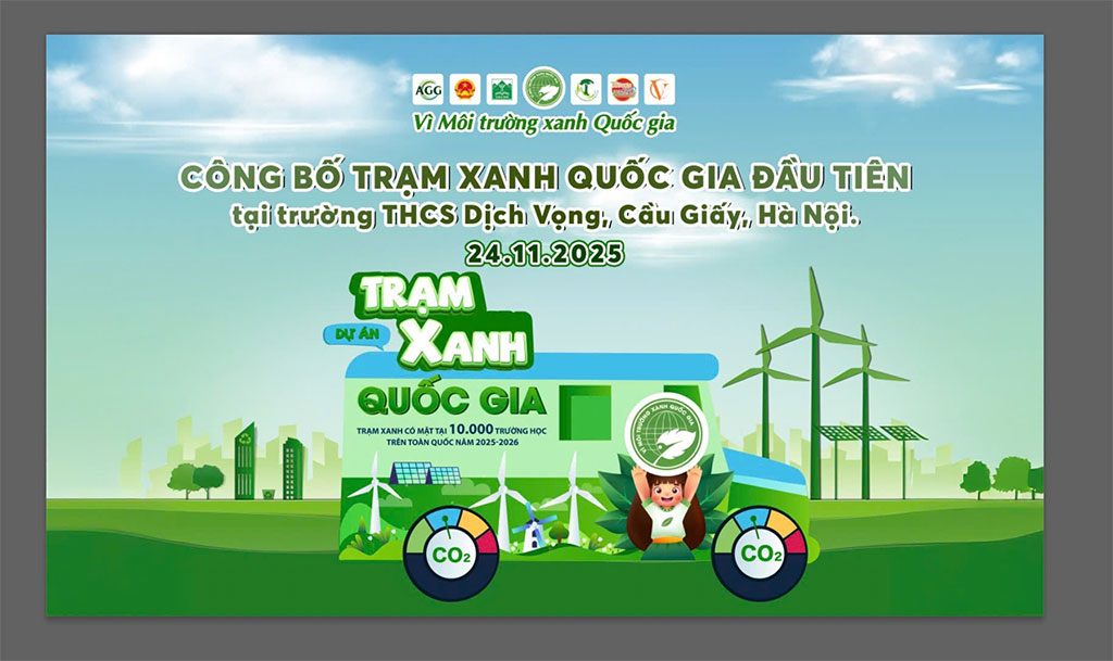 Ngày 24/11/2025, tại trường THCS Dịch Vọng (Hà Nội), Lễ phát động Cuộc thi Tìm kiếm gương mặt “Đại sứ Xanh Quốc gia 2025” đồng thời công bố Trạm Xanh Quốc gia đã được tổ chức trang trọng, thu hút sự quan tâm của đông đảo học sinh, phụ huynh và các tổ chức hoạt động trong lĩnh vực môi trường.