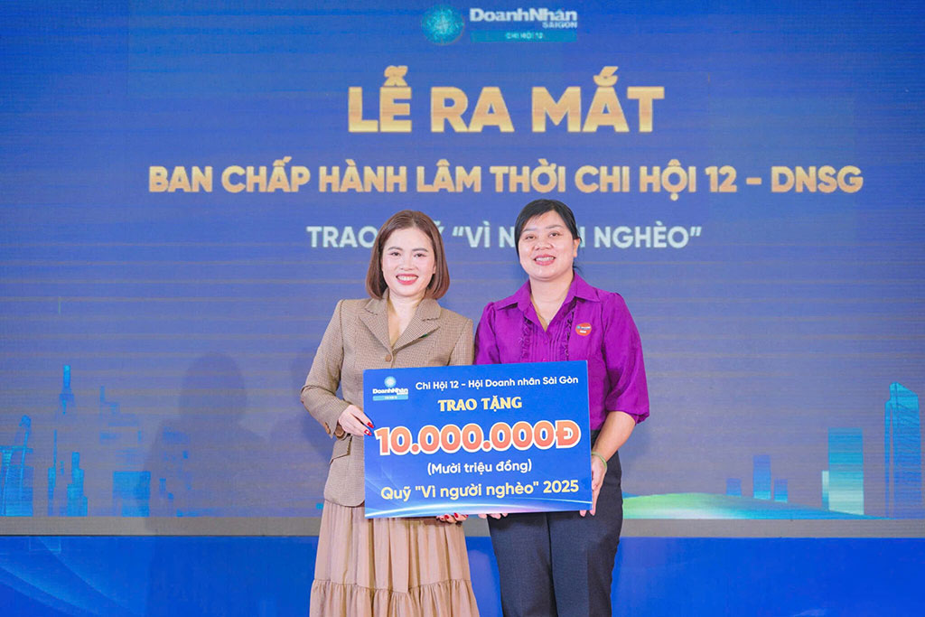 Cùng với sứ mệnh kết nối, đồng hành cùng doanh nghiệp, Chi hội 12 cũng đã trao 10 triệu đồng/phường vào “Quỹ Vì người nghèo” các phường: Trung Mỹ Tây, Đông Hưng Thuận, Thới An, Tân Thới Hiệp và An Phú Đông.