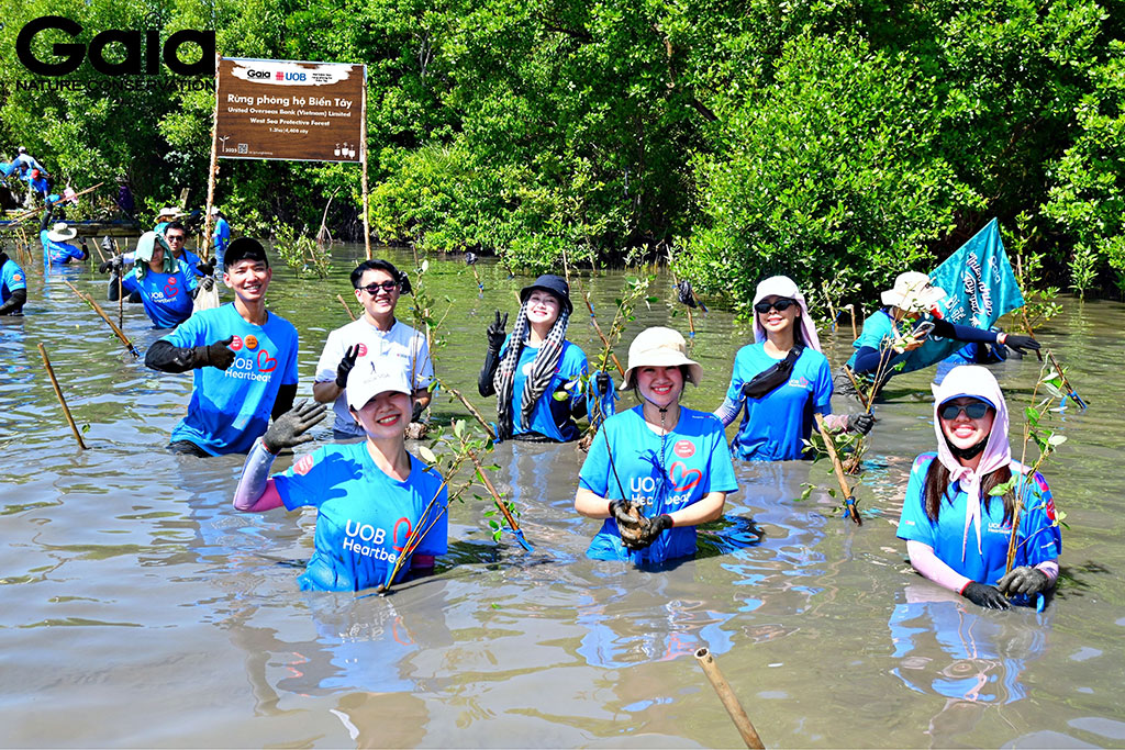 Tháng 11 vừa qua, Gaia đã triển khai trồng rừng Đê Biển Tây góp phần duy trì và bảo tồn vành đai rừng ngập mặn, giảm thiểu tác động của bão, sóng gây xói mòn và biến đổi khí hậu. Đây cũng sẽ là nơi nuôi dưỡng ấu trùng hải sản, ổn định và nâng cao năng suất nuôi trồng – khai thác thủy sản. Đồng thời, góp phần đảm bảo sinh kế bền vững cho người dân và mở ra cơ hội phát triển du lịch sinh thái.